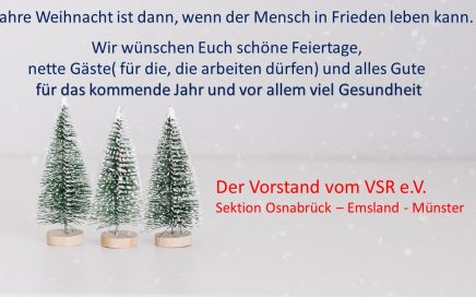 vor 3 Jahren konnten wir August Duram ( Frido) beim Sommerfest als Gründungsmitglied der Sektion Osnabrück- Emsland- Münster zu seiner 40 jährigen Mitgliedschaft im VSR gratulieren. Nun lädt er uns in sein Hotel Herrenrest zum gemütlichen Beisammensein bei Speis‘ und Trank ein. Nach zwei Frühstücktreffs wollen wir den Mitgliedern, die vormittags nicht konnten, die Möglichkeit […]